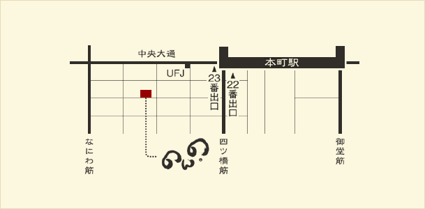 地下鉄四つ橋線本町駅23番出口徒歩3分。周辺にはコインパーキングも多数あり!